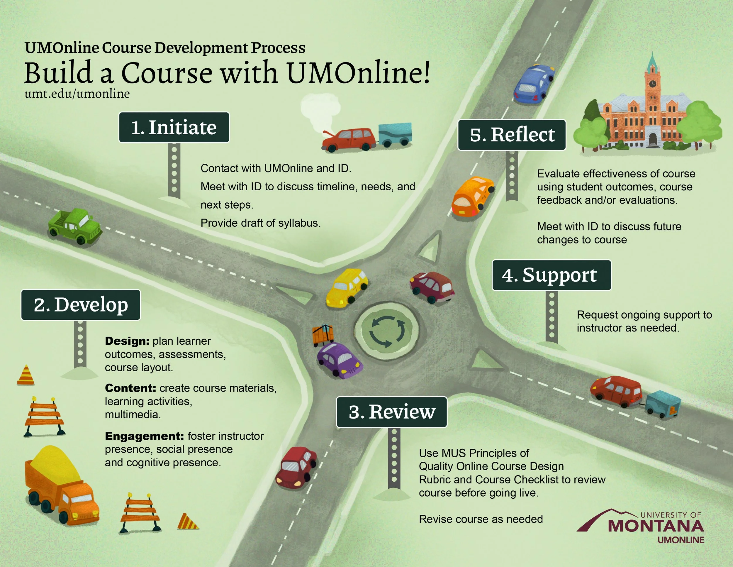 LEAD’s (formerly UMOnline) infographic for their course development process.